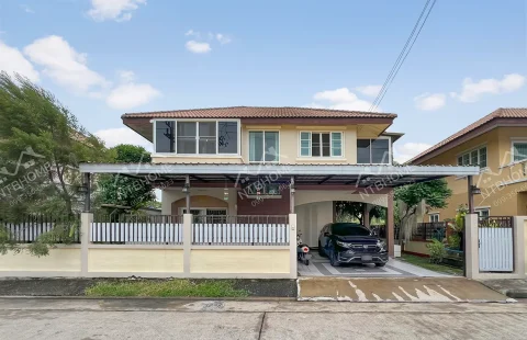 บัวทองธานีพาร์ควิล 14 บางบัวทอง ต่อเติมครบ สภาพดี พร้อมอยู่ ทำเลดีถนนเมนโครงการ