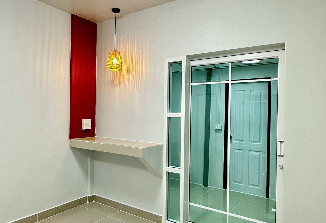 🔴 หน้าบ้านมีประตูเข้าบ้าน 2 จุด ประตูบานเลื่อนและประตูบานเล็ก