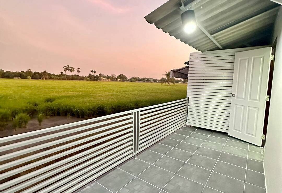 🔴 หลังบ้านมีพื้นที่อเนกประสงค์ใช้สอยเพิ่มเติมจากตัวบ้านระเบียงติดทุ่งนา