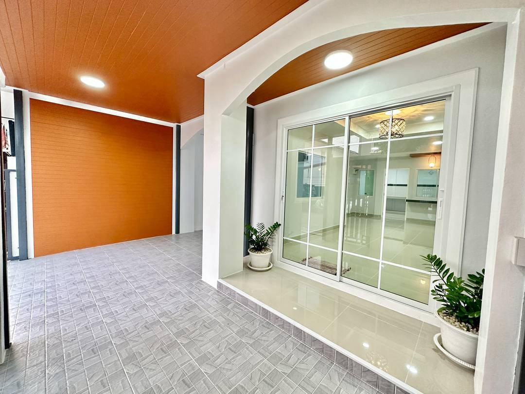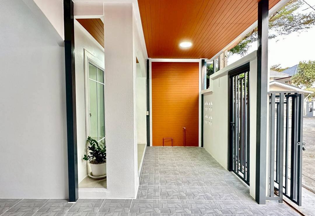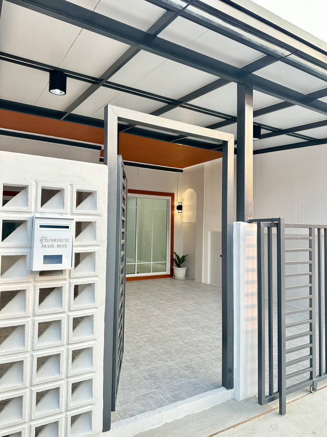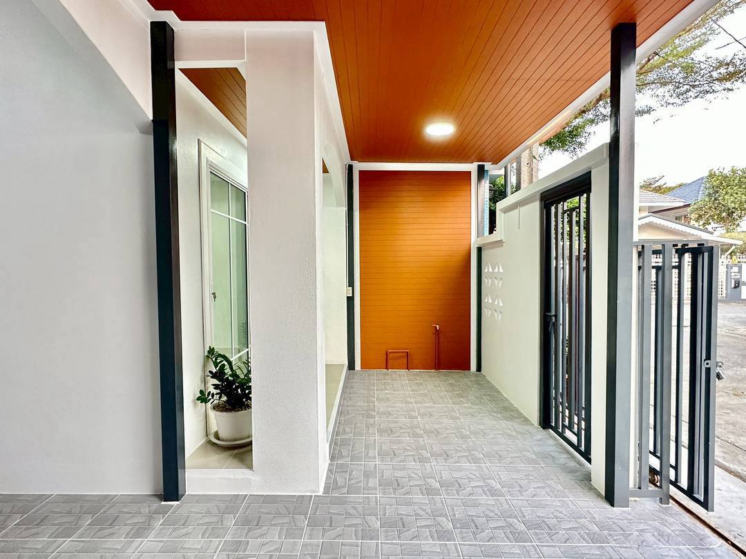 ✅ ประตูเข้าบ้านมี 2 จุด ประตูบานเลื่อนนำรถจอดได้และประตูบานเล็กเดินเข้าบ้านได้สะดวก