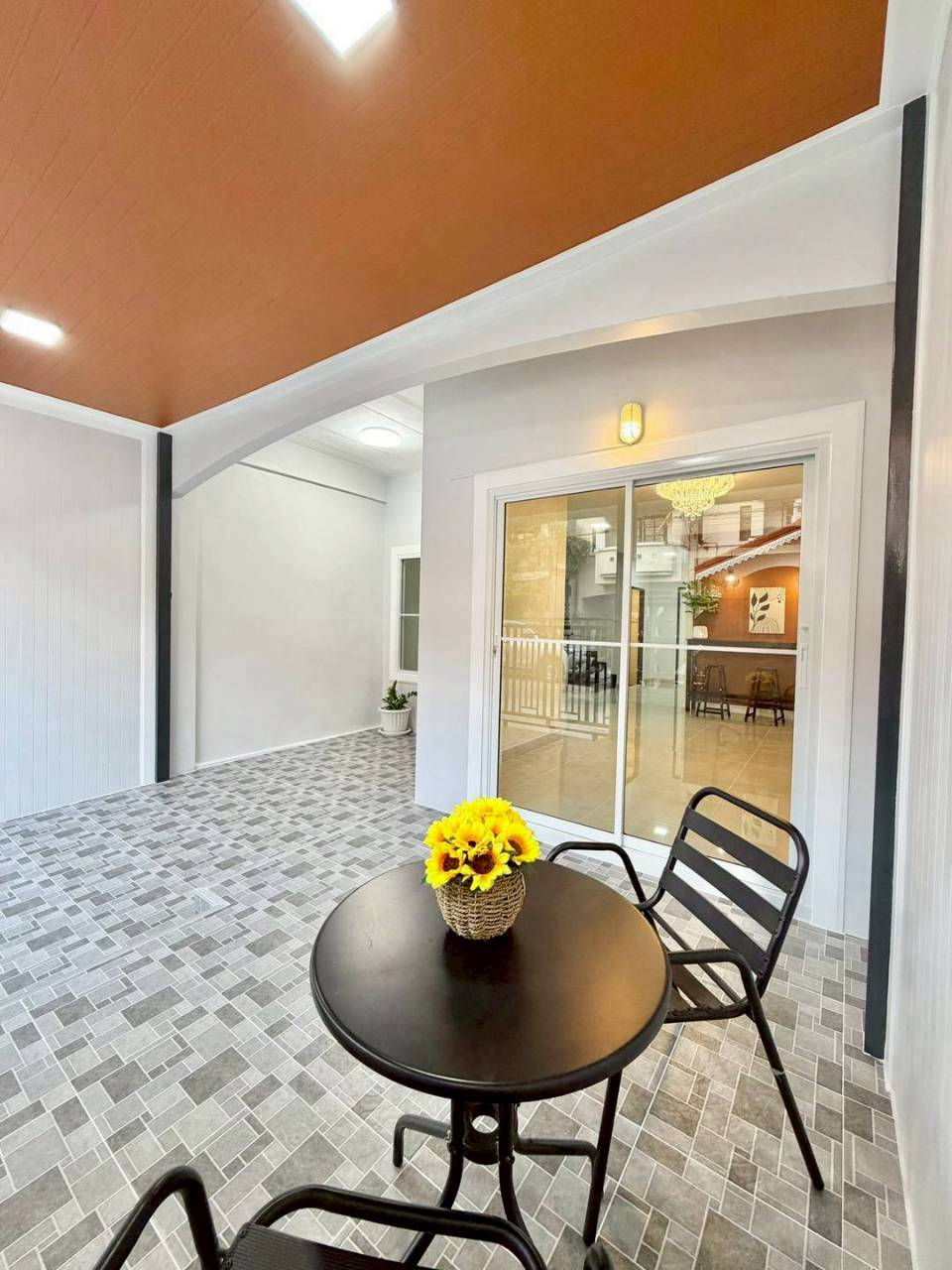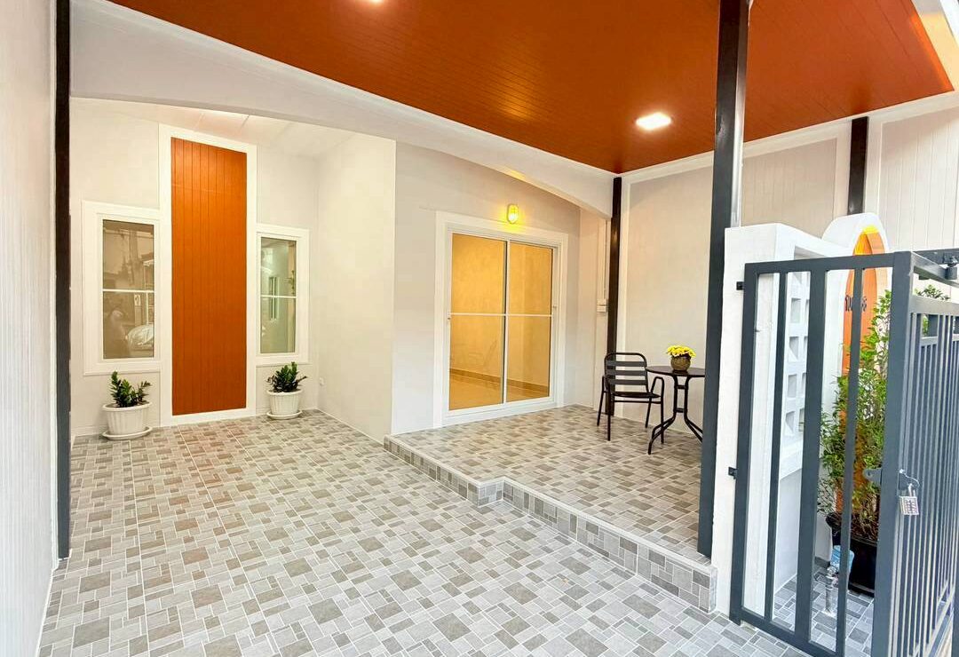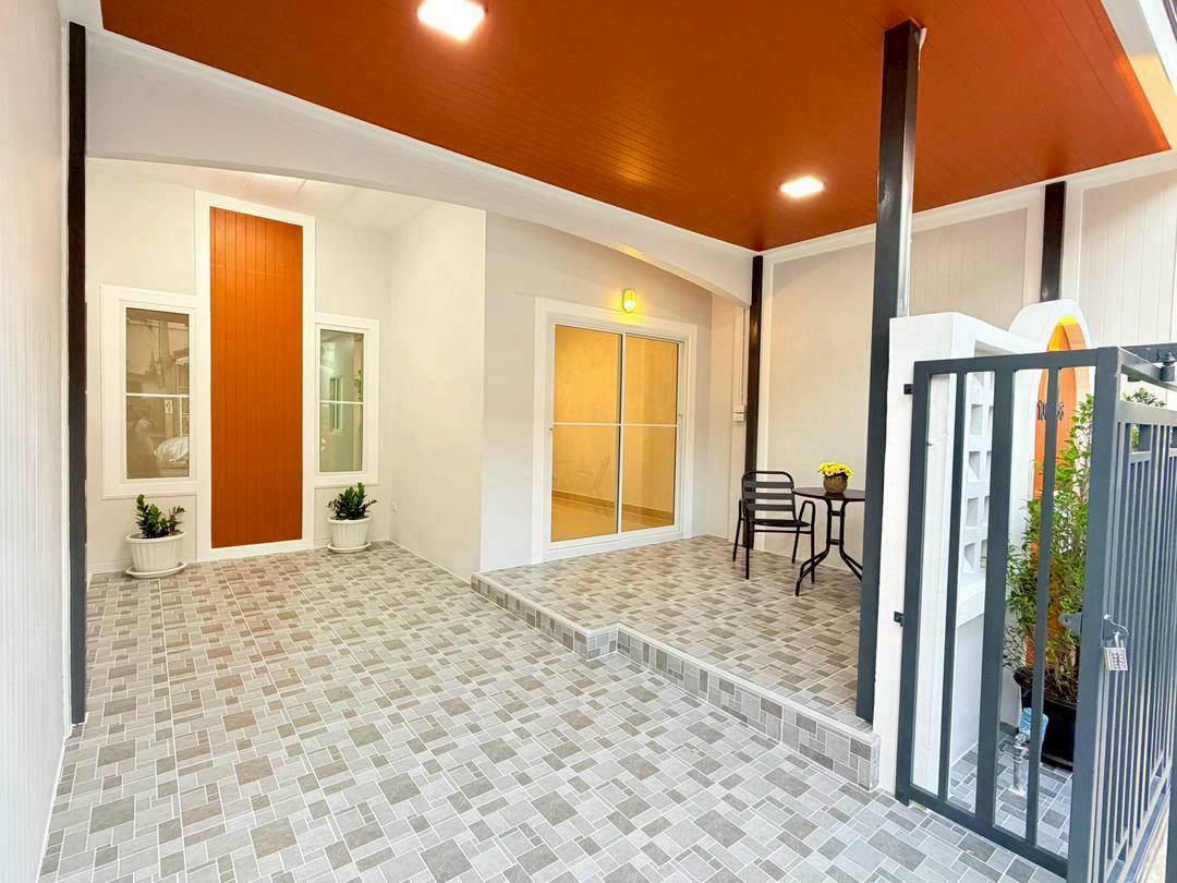🔻 มีประตูเข้าบ้าน 2 จุด ประตูบานเลื่อนนำรถจอดได้และประตูบานเล็กเดินเข้าบ้านสะดวก