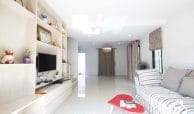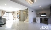 บ้านมือสองแปลงสวย บิวส์อินห้องรับแขก พร้อมเคาเตอร์ครัวลายหินอ่อน ตกแต่งด้วยโคมไฟ และผ้าม่านกัน UV บ้านทำเลดีตั้งอยู่ต้นโครงการใกล้ป้อม รปภ ถนนเมนกว้างไม่มีปัญหาเรื่องการจอดรถขวางหน้าบ้าน