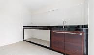 4) ห้องครัว จัดเตรียมกระเบื้องพร้อมซิ้งค์ล้างจาน และผนังกันเปื้อน
