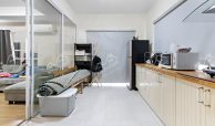 บ้านสภาพดี แบ่งโซนห้องรับแขกและครัวเป็นสัดส่วน ห้องรับแขกปูด้วยลามิเนตให้ความรู้สึกผ่อนคลาย มีประตูอลูมิเนียมกั้นห้องครัวแยกโซนชัดเจน เจ้าของดูแลอย่างดี หิ้วกระเป๋าเข้าอยู่ได้เลย