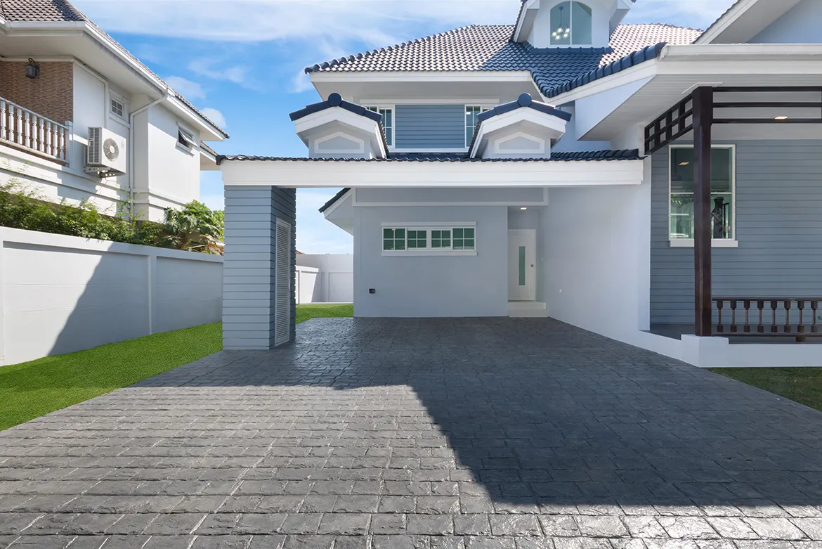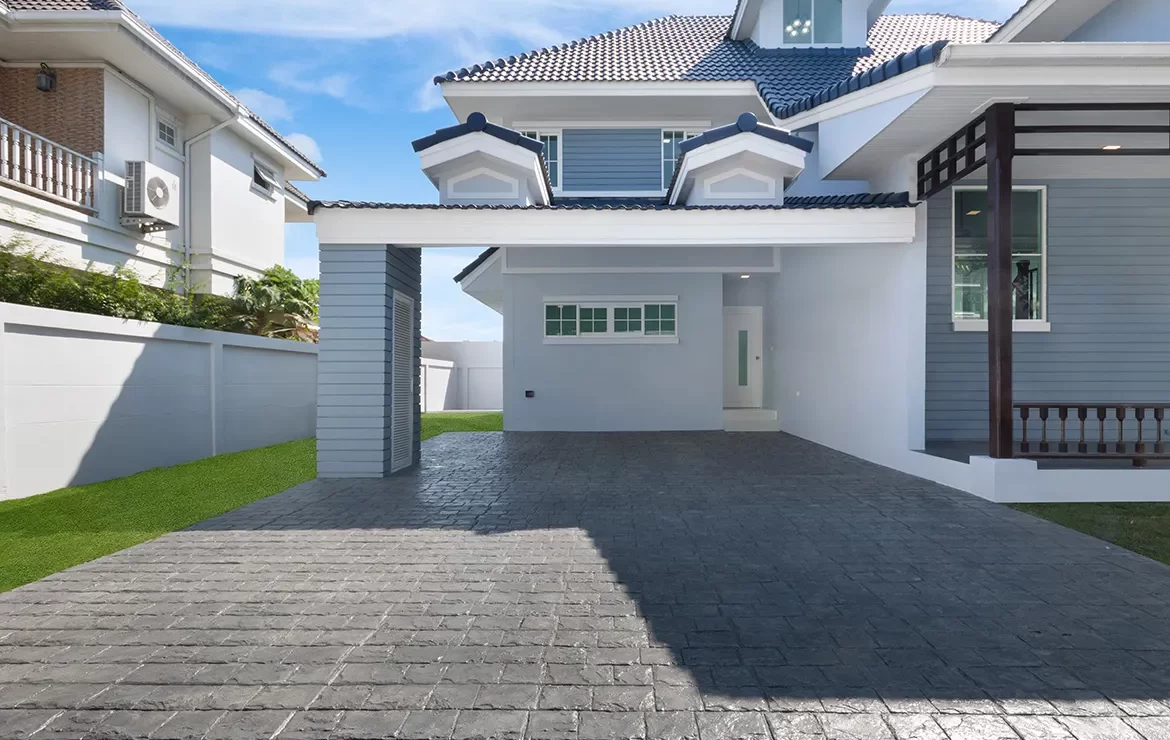 ✅ พื้นโรงจอดรถปูด้วยคอนกรีตสแตมป์