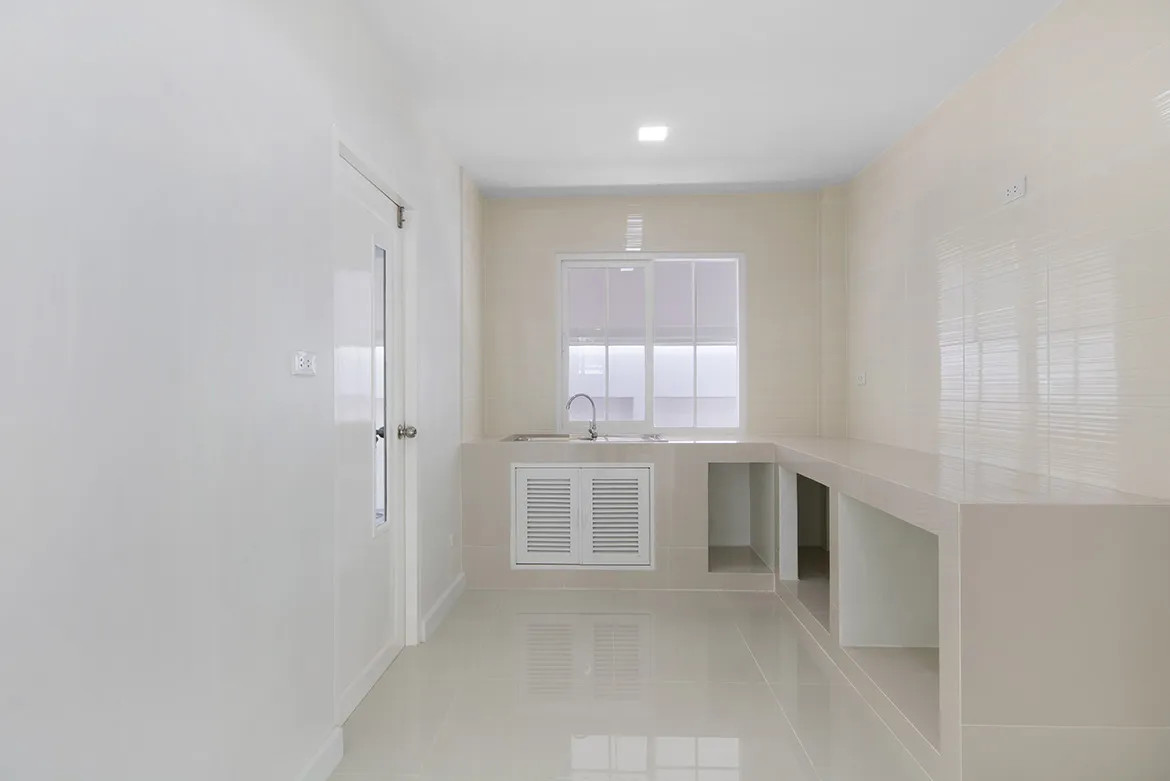 ✅ โซนห้องครัวไทย แยกจากตัวบ้านพร้อมต่อเติมเคาเตอร์ครัวภายในบ้าน (ครัวฝรั่ง/ครัวไทย)