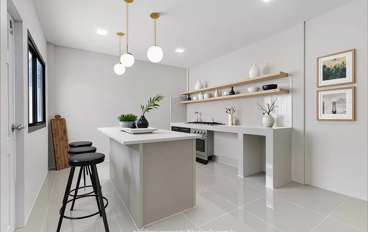 ✅ ห้องครัวแยกจากตัวบ้านหลัก พร้อมเคาเตอร์ครัว