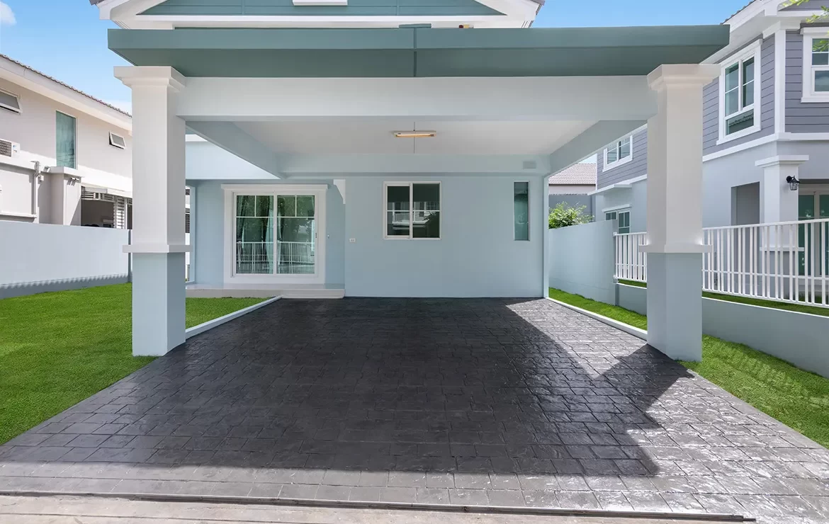 ✅ พื้นโรงจอดรถปูด้วยคอนกรีตแสตมป์