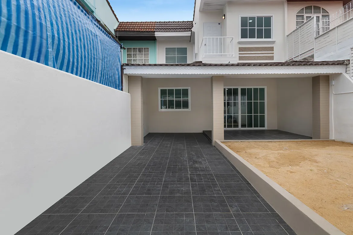 ✅ พื้นโรงจอดรถ ปูด้วยกระเบื้องกันลื่น พร้อมโซนสนาม หน้าบ้าน