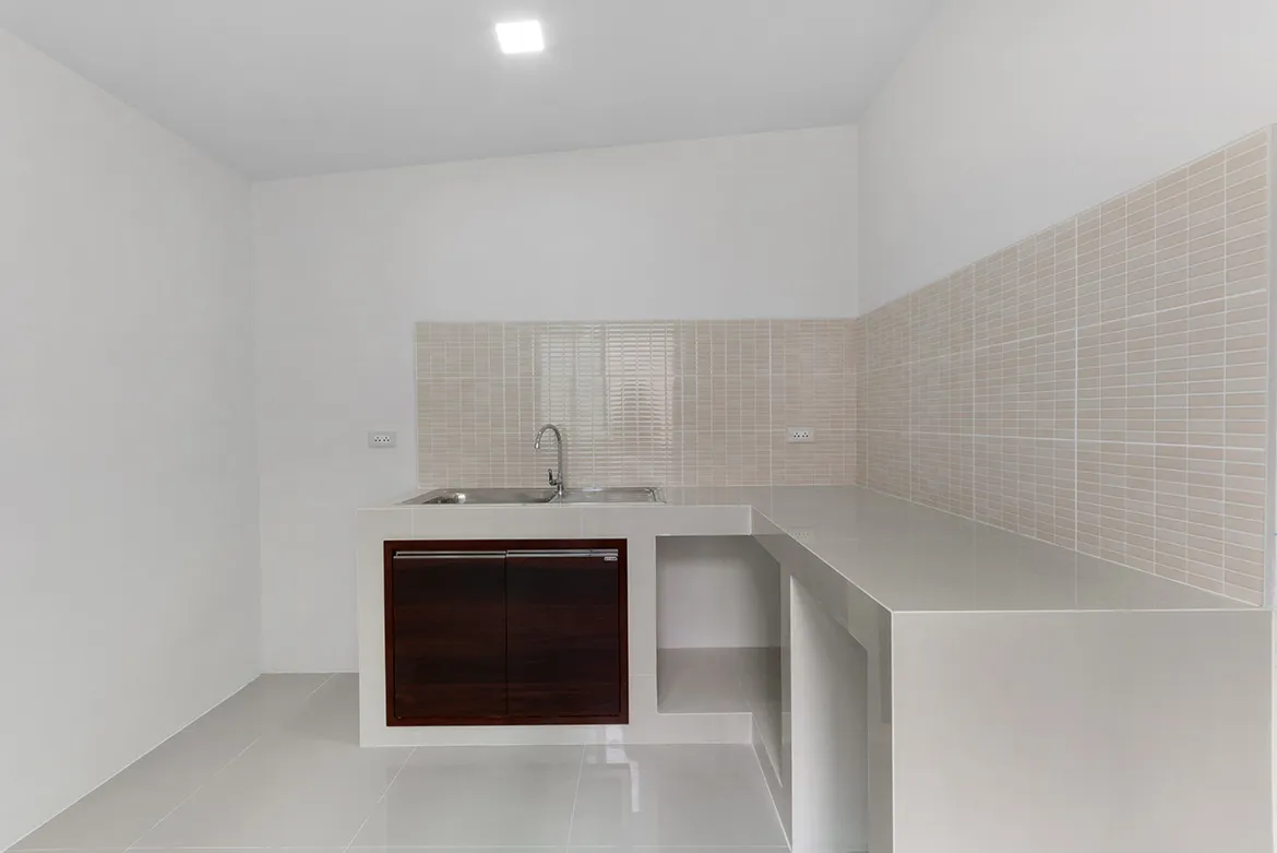 ✅ ห้องครัวแยกเป็นสัดส่วน พร้อมเคาเตอร์ครัวตัวแอล ฟังก์ชันพร้อมใช้งานจริง ด้านหลังบ้านมีโซนซักล้างสำหรับใช้สอย